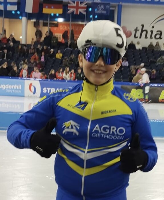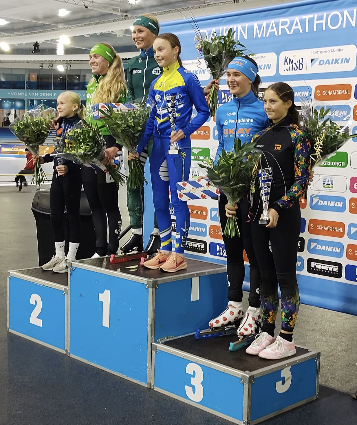 Op het affiche van de 4de Daikin Marathon Cup, die in Thialf werd verreden, stond nadrukkelijk een marathon over 5 rondjes voor meisjes en jongens pupillen. Bij de meisjes kwamen er 33 aan de start (waarvan 4 van ons), bij de jongens 16 (eentje van ons).