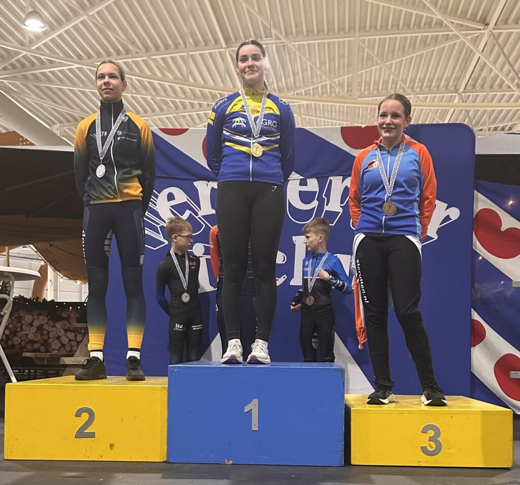 Ilana had na twee 4e plaatsen op zowel de 100 meter en 500 meter nog een klein kansje op een 3e plaats in het eindklassement van de dames pupillen B maar dan moest ze de marathon wel winnen en haar concurrente mocht dan niet vlak achter haar eindigen. Dat deed ze met verve. Door vroeg in de aanval te gaan wist ze haar concurrente te slopen en kwam ze vervolgens als eerste over de finish.