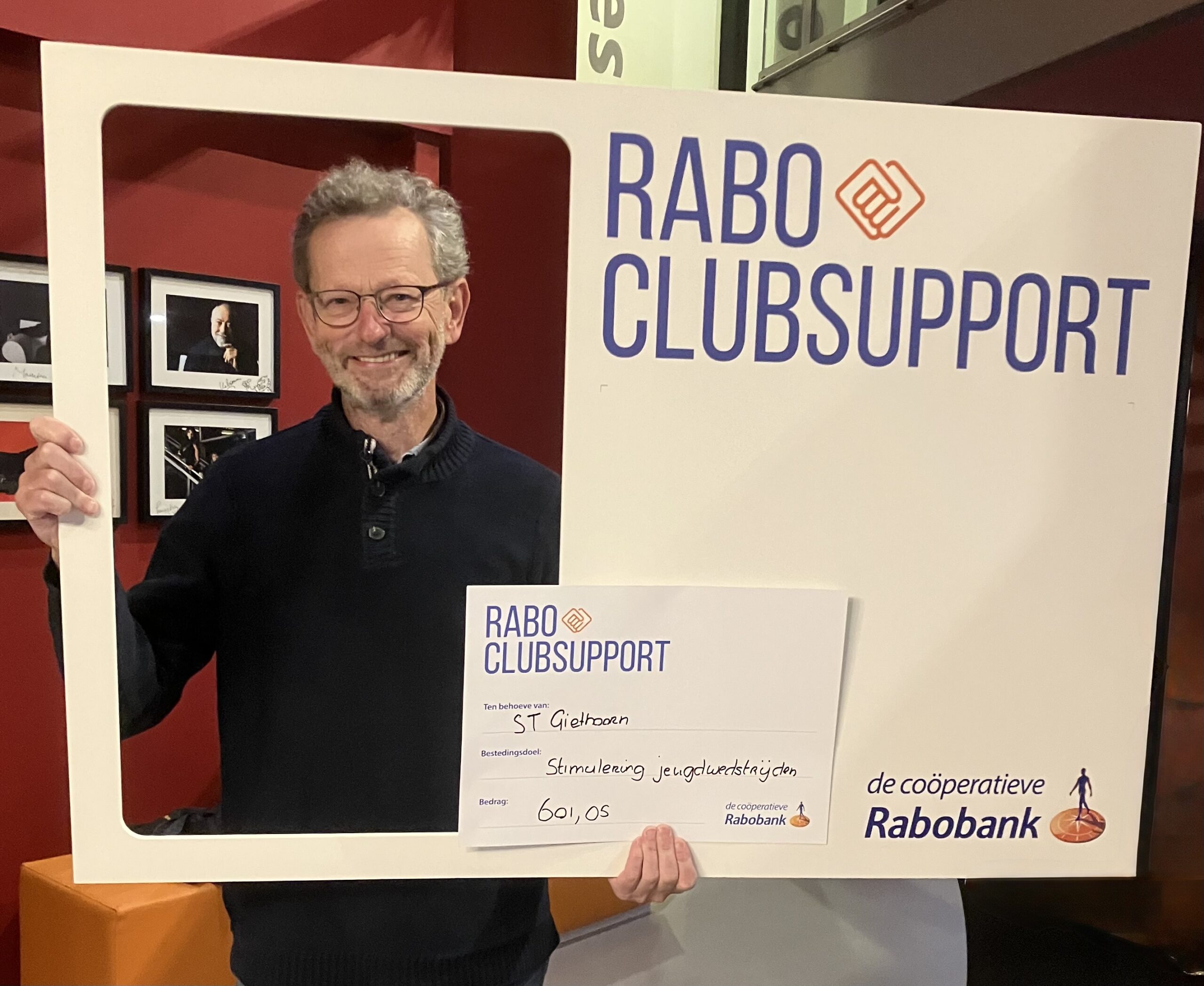 De Club Support Actie van de Rabobank is voor onze Schaats Trainingsgroep succesvol verlopen. Op 7 oktober mocht penningmeester Gerrit Smink een mooi bedrag in ontvangst nemen. In De Meenthe zette de Rabobank flink wat personeel in om alles in goede banen te leiden. Want wat waren er veel clubs en verenigingen uit de regio die hun leden met een rekening bij de Rabobank hadden gemobiliseerd om te stemmen.